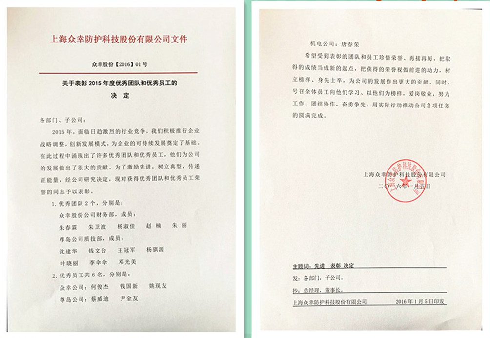 關于表彰2015年度優(yōu)秀團隊和優(yōu)秀員工的決定